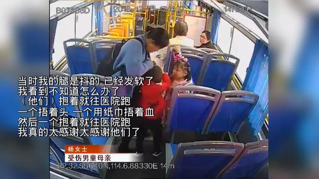 當(dāng)天下午5點(diǎn)20分,楊女士帶著她的一雙兒女,從羅湖區(qū)金光華廣場(chǎng)公交站臺(tái),上了一輛前往文錦渡客運(yùn)站方向的360路公交車(chē)。正當(dāng)楊女士帶著大女兒在車(chē)廂前部投幣時(shí),楊女士的年僅三歲的小兒子獨(dú)自一人跑向車(chē)廂后部。此時(shí)車(chē)子啟動(dòng)了,楊女士的兒子不慎摔倒,頭撞在車(chē)廂后部的階梯上,血流如注。