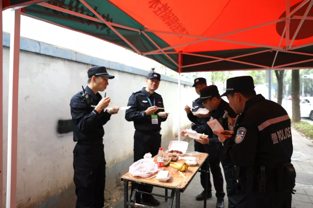 參戰(zhàn)民警、輔警們冒雨堅(jiān)守,維護(hù)秩序