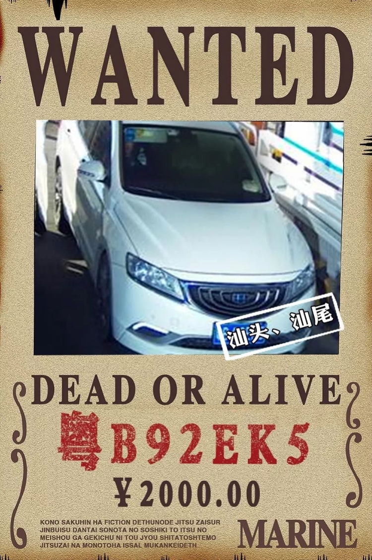 深圳新聞網(wǎng)2018年12月19日訊 (記者 劉婷)深圳交警仿照《海賊王》漫畫(huà)海報(bào)設(shè)計(jì),公布正“懸賞”通緝10輛套牌車(chē)。按“每宗獎(jiǎng)勵(lì)2000元”的規(guī)定,對(duì)舉報(bào)線索查證屬實(shí)的群眾進(jìn)行獎(jiǎng)勵(lì)。
