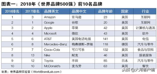 由世界品牌實(shí)驗(yàn)室(World Brand Lab)獨(dú)家編制的2018年度(第十五屆)《世界品牌500強(qiáng)》排行榜于12月18日在美國紐約揭曉。得益于人工智能和大數(shù)據(jù)技術(shù),去年的季軍亞馬遜(Amazon)一舉擊敗蘋果(Apple)榮登榜首,其第三季度營業(yè)利潤創(chuàng)10年新高;谷歌(Google)承襲科技優(yōu)勢,在無人駕駛領(lǐng)域成績突出,位列第二;蘋果(Apple)退居第三。美國占據(jù)500強(qiáng)中的223席,穩(wěn)居品牌大國第一。中國入選的品牌只有38個,與經(jīng)濟(jì)第二大國的地位并不匹配。其中表現(xiàn)亮眼的品牌有國家電網(wǎng)、騰訊、海爾、華為、青島啤酒、中化、五糧液、中國國航。
