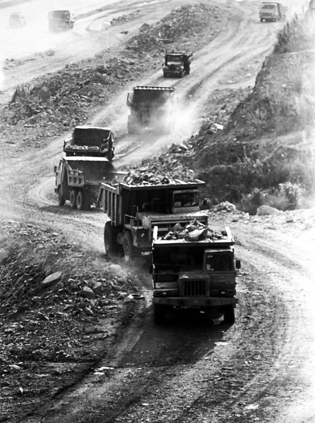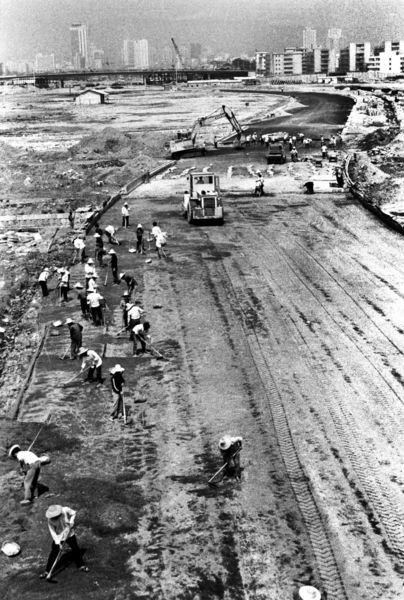 1994年修建濱海大道時(shí)泥頭車運(yùn)泥填海。鄭東升攝