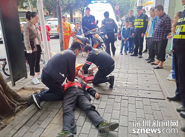 20日上午,福田華富市場附近一名男子突然倒地,呼吸心跳驟停。