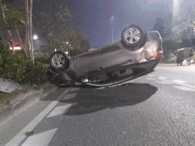 驚險!男子載三歲小兒醉酒駕駛,深夜凌空翻車180度!