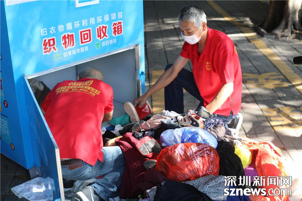 工作人員正在回收市民投放衣物