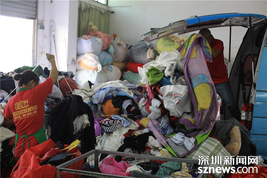 衣物到達(dá)分揀中心的第一步:堆放在集中放置區(qū)等待第一次分揀