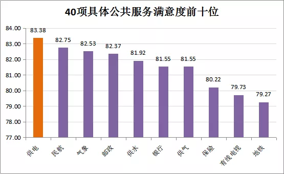 公用事業(yè)及市場服務、供電服務仍然是公共服務體系建設的亮點,連續(xù)十年位居十大公共服務領域和40項具體政府公共服務滿意度第一位。公眾對公用事業(yè)及市場服務的滿意度依然最高(80.80分);對公共教育、公共交通的滿意度次之;環(huán)境保護、住房保障和就業(yè)保障是政府公共服務建設的薄弱環(huán)節(jié)。