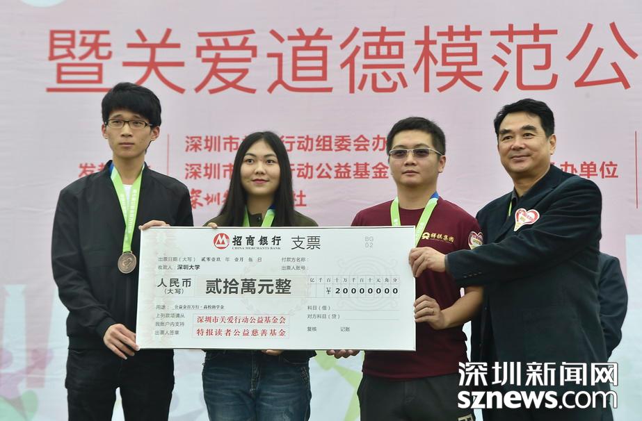 值得一提的是,在活動(dòng)現(xiàn)場(chǎng)還舉行了“公益金百萬(wàn)行”助學(xué)金捐贈(zèng)儀式,為深圳大學(xué)、深圳職業(yè)技術(shù)學(xué)院、深圳信息學(xué)院三所高校各捐贈(zèng)了20萬(wàn)元,用于資助這三所學(xué)校的困難學(xué)子。迄今深圳特區(qū)報(bào)讀者公益慈善基金已資助1613名貧困大學(xué)生,累計(jì)資助金額達(dá)409萬(wàn)元。