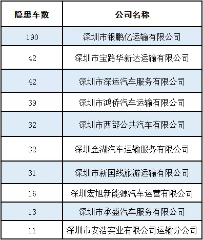我市公路及旅游客運(yùn)大客車(chē)隱患最多的前十個(gè)公司