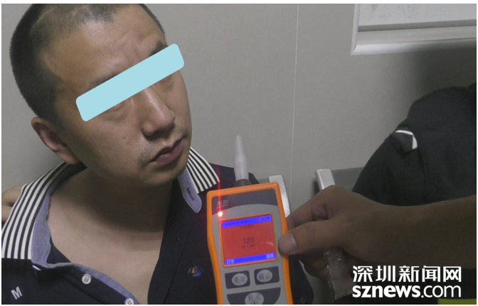 2018年5月27日21時25分許,坪山大隊民警在坪山區(qū)金田路老屋村路段處理一起交通事故時,發(fā)現(xiàn)肇事粵B牌小車的駕駛員張某有危險駕駛的嫌疑,執(zhí)勤民警對其進行呼氣式酒精檢測,結(jié)果居然高達320mg/100ml,隨后經(jīng)抽血鑒定檢驗,張某的血檢值達到343.01mg/100ml,是一名名副其實的“虎王”。