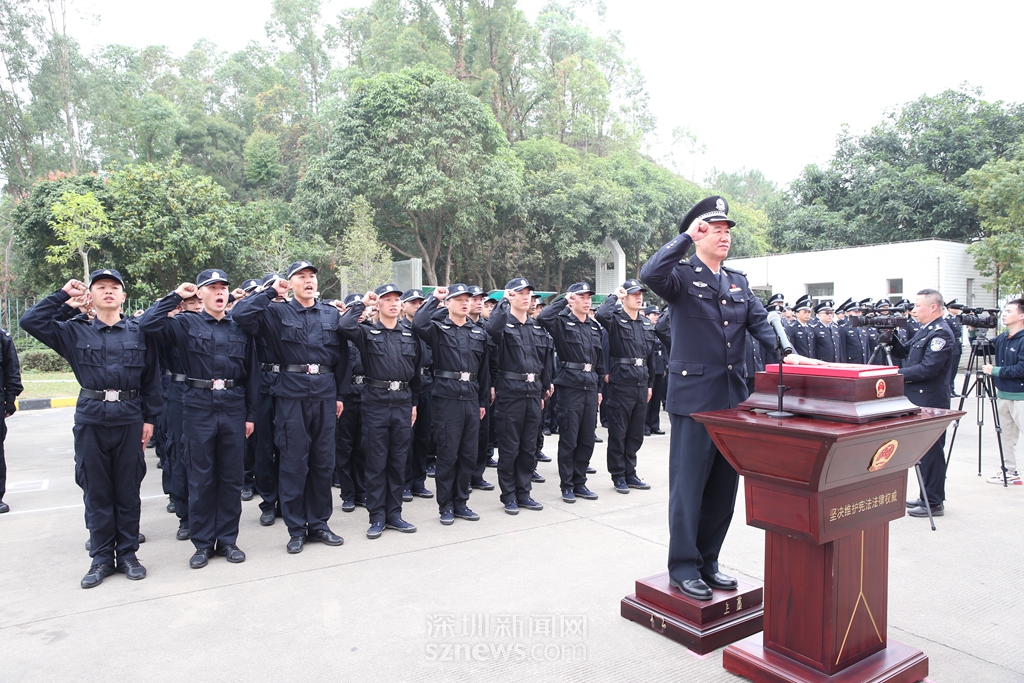 “我宣誓,忠于中華人民共和國(guó)憲法,維護(hù)憲法權(quán)威,履行法定職責(zé),忠于祖國(guó),忠于人民,恪盡職守,廉潔奉公,接受人民監(jiān)督,為建設(shè)富強(qiáng)民主文明和諧美麗的社會(huì)主義現(xiàn)代化強(qiáng)國(guó)奮斗!”鏗鏘誓言,猶在耳畔。活動(dòng)中,深圳監(jiān)獄監(jiān)獄長(zhǎng)蔡曙光,帶領(lǐng)70名新入職警察面對(duì)國(guó)徽、手撫憲法,許下了他們忠于祖國(guó)、忠于人民的錚錚誓言,這也是深圳監(jiān)獄對(duì)新入職警察開展集中的入職憲法宣誓。