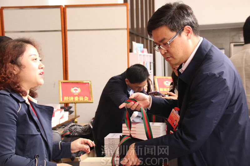 政協(xié)委員張小梨領取會議資料