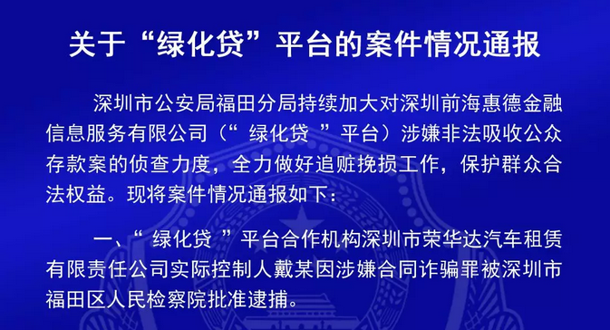 關于“綠化貸”平臺的案件情況通報