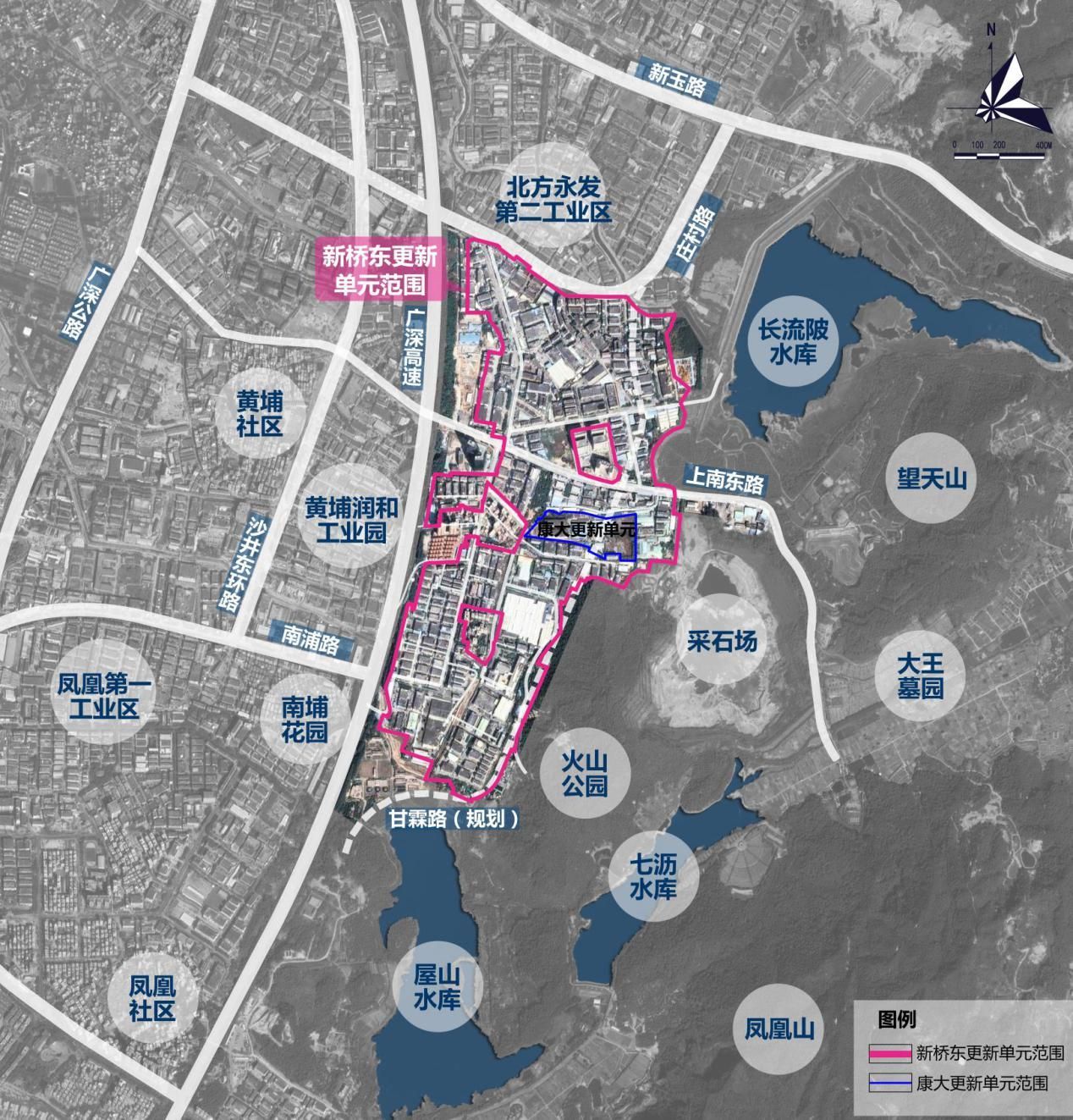 記者了解到,新橋東片區(qū)重點更新項目也是全市首個“平方公里”級更新單元。項目詳細城市設計范圍為北至莊村路,西至廣深高速,南部和東部以甘霖路和現(xiàn)狀建設邊界圍合區(qū)域,由新橋東片區(qū)重點城市更新單元范圍和康大工業(yè)基地城市更新單元范圍構(gòu)成,面積約1.6平方公里,其中拆除用地面積為1.27平方公里。