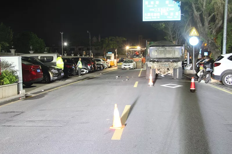 2018年11月27日凌晨2時(shí)21分許,龍某駕駛無號牌二輪電動(dòng)車沿大鵬新區(qū)大鵬街道建設(shè)路由北往南方向行駛至華興新村路段時(shí),車頭徑直撞上了停放在道路旁的粵B號牌輕型自卸貨車車尾,頓時(shí)龍某連車帶人摔倒在地。