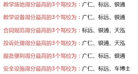 2018年第四季度,依據(jù)"深圳駕培"微信公眾號,學(xué)員對駕校從教學(xué)場地、教學(xué)設(shè)備、合同規(guī)范、投訴處理、服務(wù)便利、安全設(shè)施6個方面進行點評。