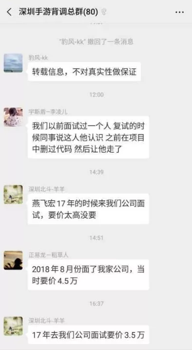 在公告發(fā)出當(dāng)天,燕飛宏的名字迅速在深圳手游圈流傳開來。有從業(yè)者表示,“我在的幾個(gè)游戲行業(yè)招聘群都傳遍了”。在同行交流群里,還有從業(yè)者曝出他過往的“事跡”。