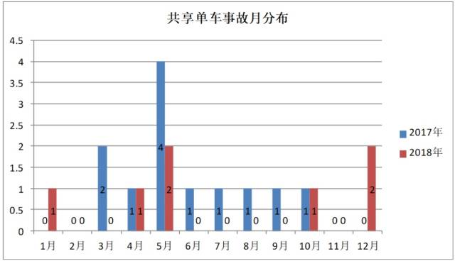 從事故多發(fā)月份來(lái)看,5月份是共享單車事故的高發(fā)月份,在2017年和2018年兩年中,五月份均是死亡人數(shù)最多的月份。兩年中,發(fā)生在5月份的事故死亡人數(shù)共6人,占總死亡人數(shù)的31.58%。