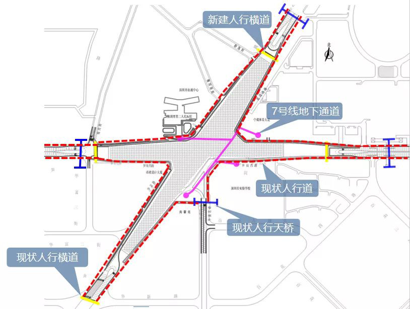 車行交通調(diào)整為:皇崗路 -紅荔路 -華富路 -華新路;上步路 -紅荔路 -華強(qiáng)北路 -華新路或上步路 -筍崗西路 -百花四路 -華新路。