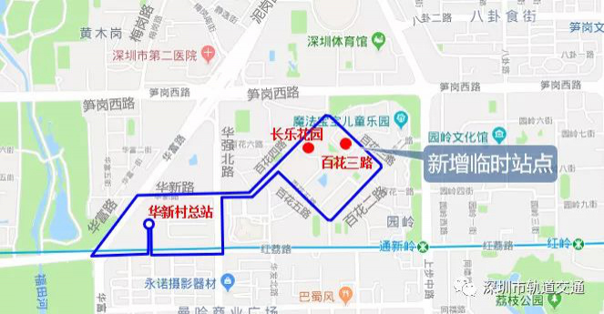 華新村總站環(huán)線(單邊順時(shí)針運(yùn)行),??咳A新村總站、華新村、市話大廈①、華新路、百花四路、長樂花園、百花三路、百花二路、百花村、百花四路、華新村總站。
