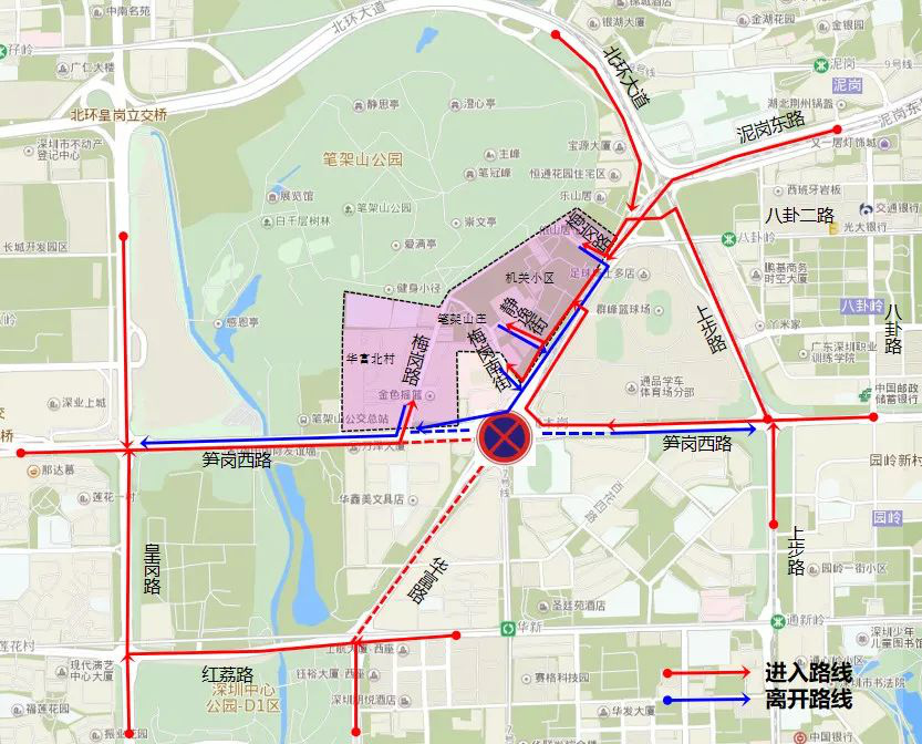 去往市政設(shè)計(jì)大廈及福田稅務(wù)局的車(chē)輛,交通調(diào)整為:紅荔路 -華富路。