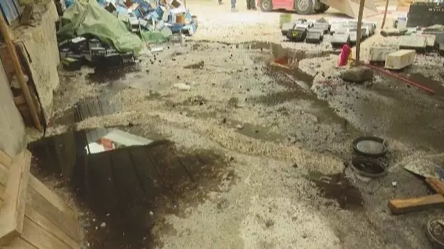 執(zhí)法人員進入時,老板和工人剛逃跑,只剩1名看門男子。而帶有強腐蝕性的電池廢液,無任何處理滿地橫流,現(xiàn)場地表和圍擋的金屬,都已被嚴重腐蝕。