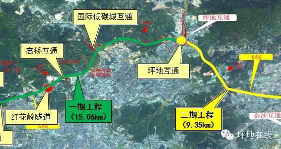 路線長(zhǎng)約15.06公里,全線雙向六車道,并在坪地設(shè)坪地高橋、深圳國(guó)際低碳城、龍崗大道三個(gè)高速出入口。
