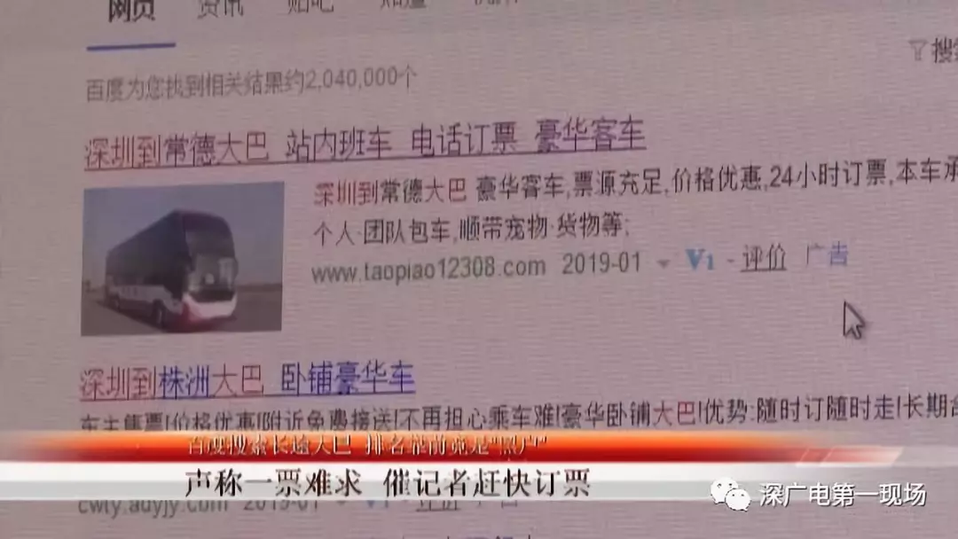 記者首先通過網(wǎng)絡(luò)搜索從深圳到湖南的大巴車,發(fā)現(xiàn)排在前面幾位的全部都是帶有廣告標(biāo)識的網(wǎng)頁,進(jìn)入網(wǎng)頁以后發(fā)現(xiàn),上面除了簡單的宣傳文字和聯(lián)系電話以后,沒有任何其他的東西。記者嘗試撥打網(wǎng)頁上的聯(lián)系電話,對方表示不可以在網(wǎng)上購票,而是跟昨天查處的非法營運大巴一樣,必須到他們指定的地方乘車。