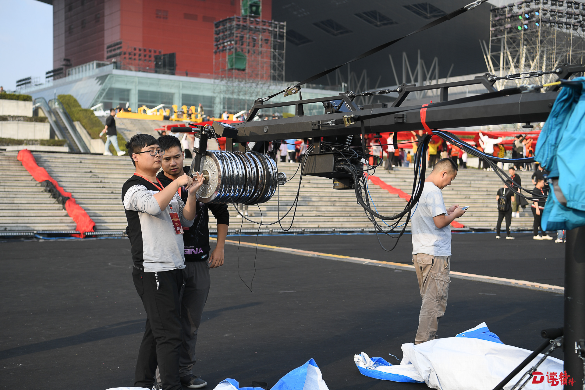 “你們的目光所及都是舞臺!”當記者當天下午來到市民中心廣場時彩排,分會場總導演孫濱指著搭建的主舞臺、舞臺前方的階梯和廣場、以及舞臺后方的高樓大廈這樣說。