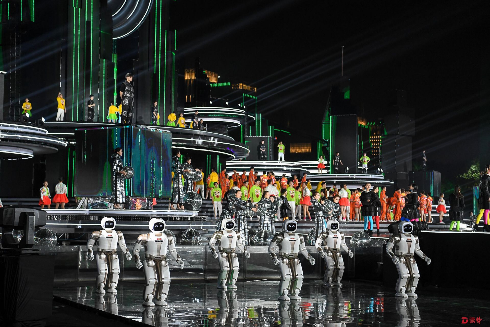 “可以說深圳分會場的每一個節(jié)目都貫穿了科技元素?!北热缥枧_上最新型的跳舞機器人、機械臂,演員衣服上嵌入的柔性屏,還有無人機、撲翼飛行器、云軌、云巴等等。晚會還使用了非常多的AR(增強現(xiàn)實)技術,在屏幕上把虛擬世界套在現(xiàn)實世界并進行互動,虛實結合呈現(xiàn)出十足的“夢幻”之感。