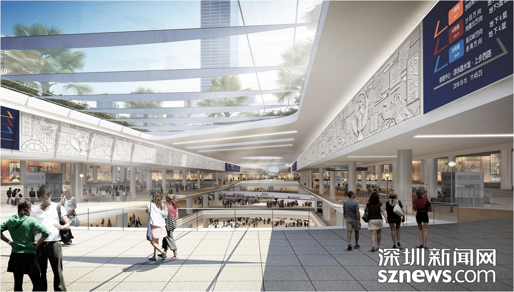 在此過程中,項(xiàng)目結(jié)合城市更新,以軌道交通為核心,通過5個軸帶有效連接體育中心、市二醫(yī)院、華富村、華強(qiáng)北商業(yè)街、筆架山公園、中心公園等多個城市區(qū)域,形成集多種功能為一體的綜合型城市地下空間新典范。