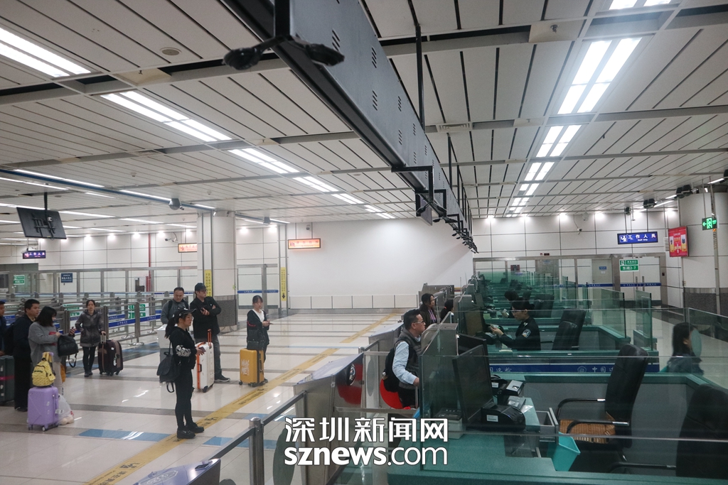 2月2日22:51,西九龍口岸邊檢加開通道查驗最后一班乘客(通訊員 王迪攝)