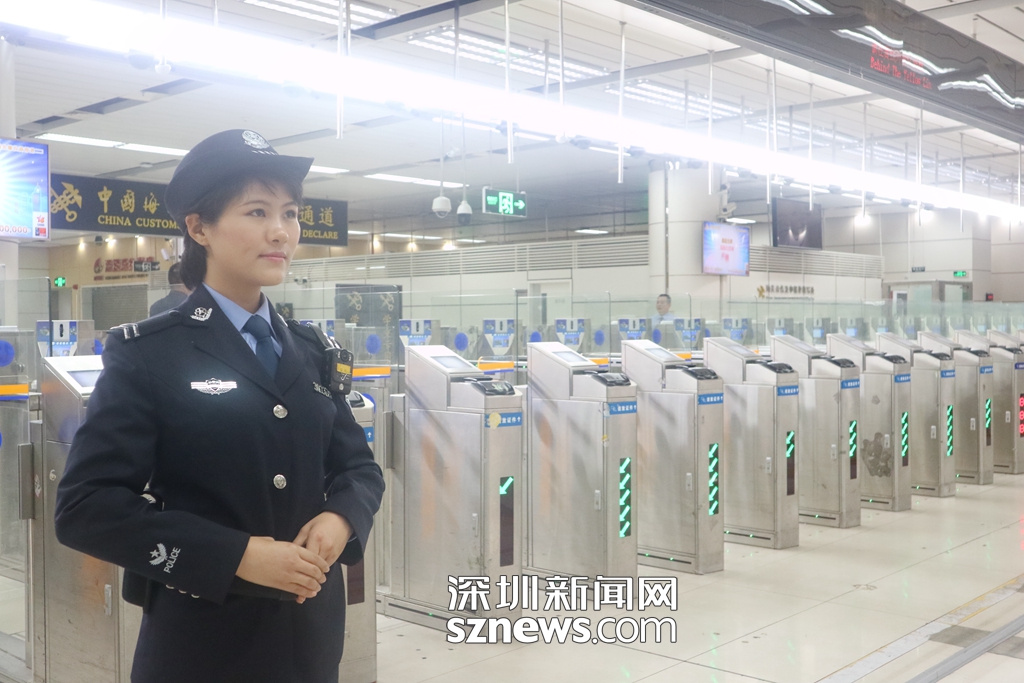 2月3日2:00,皇崗邊檢站十三隊分隊長云娜在皇崗口岸出境大廳自助查驗通道監(jiān)護(通訊員 黃俊生攝)