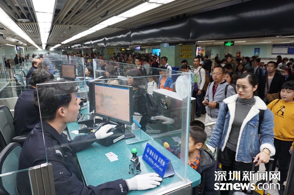 2月3日2:00許,邊檢民警開足通道高效為經皇崗口岸入境返鄉(xiāng)歡度春節(jié)的香港居民辦理查驗手續(xù)(通訊員 黃俊生攝)