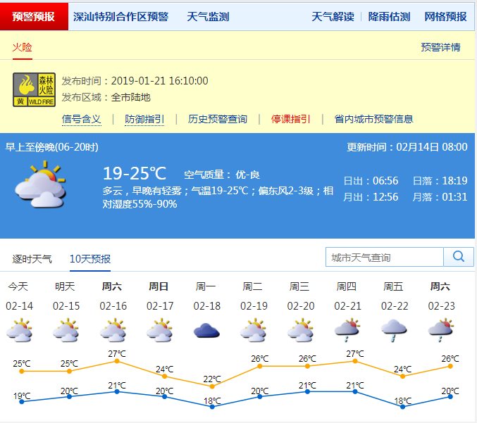 記者從深圳市氣象局了解到,14日深圳全市多云為主,氣溫19-25℃,相對(duì)濕度70%-90%,偏東風(fēng)2-3級(jí),能見度8-18公里。值得一提的是,今天距離深圳平均入冬日:1月13日已經(jīng)過去一個(gè)月了,今年直接入夏的可能性越來(lái)越大。