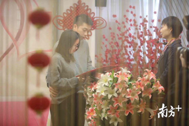 我們結(jié)婚啦!2月14日情人節(jié),一大早,深圳市羅湖區(qū)民政局婚姻登記處迎來許多對新人前來登記結(jié)婚。頒發(fā)證件、許下諾言、親密相吻……一對接一對的新人完成莊重的儀式,留下甜蜜蜜的合影,浪漫的氣息彌漫整個(gè)空間。南方日報(bào)記者朱洪波攝影報(bào)道