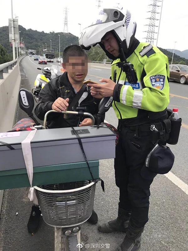 2月14日上午,深圳交警巡邏至南坪快速長嶺陂大橋時發(fā)現(xiàn)一輛非機(jī)動車上快速路。上前詢問后得知,男子是幫客戶送禮物的,不料卻迷路了,這才誤闖了快速路。蜀黍?qū)ζ浣逃螅杆賹?dāng)事人護(hù)送下快速路路口。