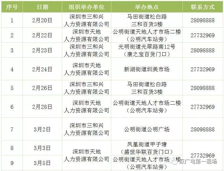 其中,深圳市公共就業(yè)服務(wù)中心26場,福田區(qū)27場,羅湖區(qū)40場,鹽田區(qū)14場,南山區(qū)9場,寶安區(qū)22場,龍崗區(qū)60場,龍華區(qū)56場,坪山區(qū)18場,光明區(qū)25場,大鵬新區(qū)9場。