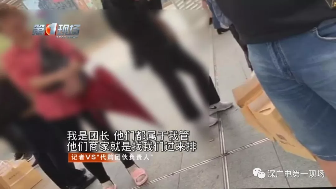 記者在海岸城鮑師傅商鋪門口,注意到了一位穿粉色毛衣的女子,她排了半天的長隊,可等到自己該買面包的時候,卻什么都沒買,空手而歸,繼續(xù)排隊,她告訴記者,自己也是一名“代購”,而就在這時,一名自稱是“負責人”的男子出現(xiàn)了。