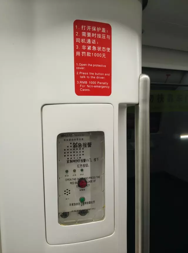 客室緊急對講裝置安裝于客室車門左側(cè),每節(jié)車設有4個,在緊急情況(如發(fā)生乘客身體不適、爭執(zhí)或者衣物被車門夾住等情況)下,乘客可打開報警小門,根據(jù)防護罩上提示進行操作,與司機進行對話。