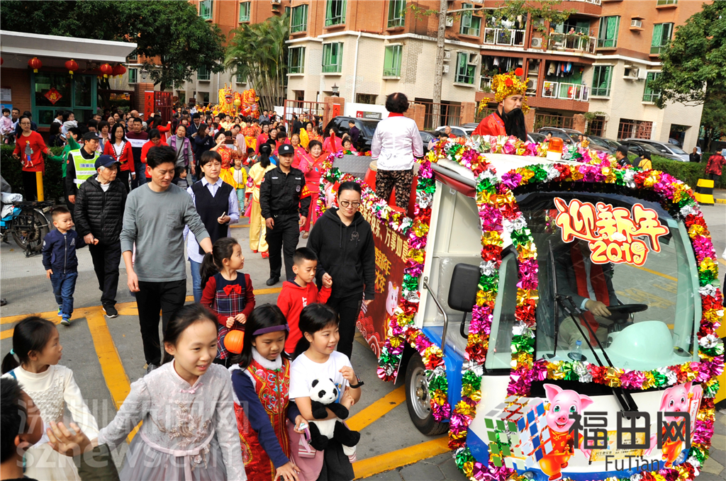 巡游活動一直持續(xù)進行了三個多小時,把梅林一村十三個圍合通通巡游了一圈,讓每個村民都聽到祝福感受了濃濃的年味。據悉,此次梅林一村2019新春萬人團拜大巡游活動是梅林街道辦事處資助的民生微實事項目,由梅林街道辦事處和梅林一村社區(qū)工作站主辦,萬廈社區(qū)公共服務中心和梅林一村管理處承辦。