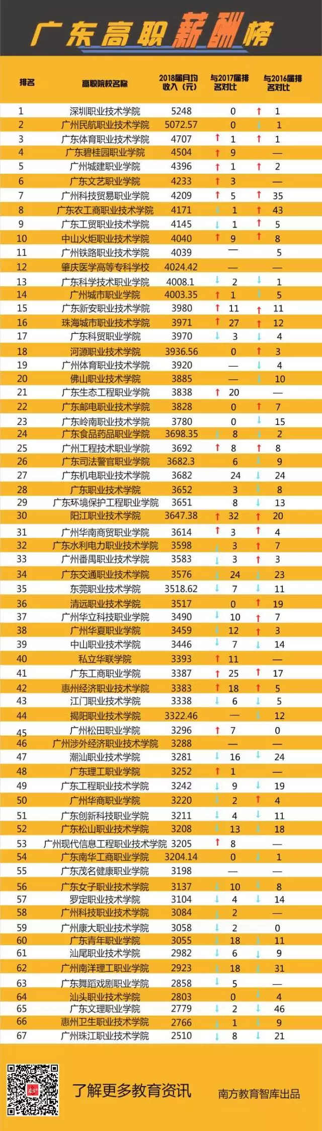 不久前,國(guó)務(wù)院發(fā)布《國(guó)家職業(yè)教育改革實(shí)施方案》,廣東有良好的產(chǎn)業(yè)基礎(chǔ),也是職業(yè)教育大省,畢業(yè)生就業(yè)情況如何?全省67所高職院校公布了2018年畢業(yè)生的平均月薪,其中42所超過(guò)全省專科3362元的平均值。