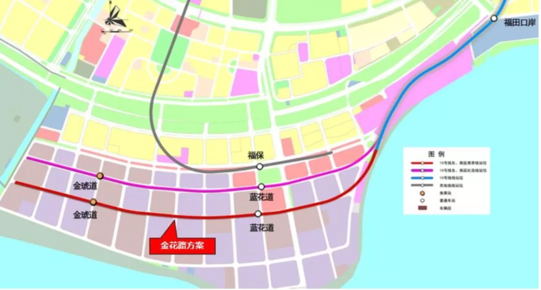 10號線南延線路起自在建10號線福田口岸站,向西南敷設,以金花路和金葵路交叉口為終點。線路全長約3.0公里,采用地下敷設。