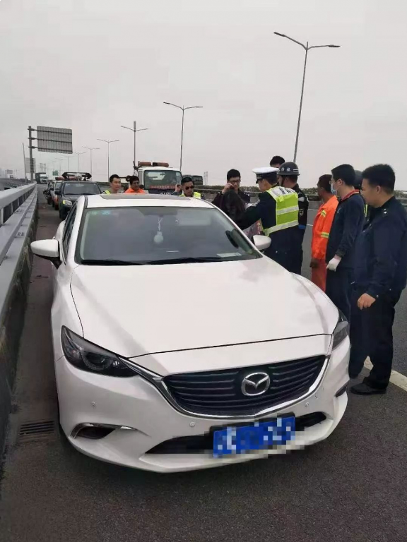 2019年3月4日14時(shí)許,深圳交警接到報(bào)警稱在沿江高速北行西鄉(xiāng)段,一輛白色小轎車停在應(yīng)急車道,小轎車旁一名女子坐在高速公路橋邊情緒十分不穩(wěn)定。深圳交警快速反應(yīng),立即趕往現(xiàn)場。