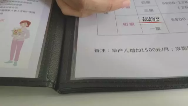 這家家政公司把核心業(yè)務(wù)直接鎖定在月嫂服務(wù),看到有顧客前來,工作人員稱公司剛剛換了新的價格牌。價格單顯示,月嫂一般工作周期為26天,初級月嫂即一星二星級,薪資從6800到9800,金牌服務(wù)則在12800到2萬元。