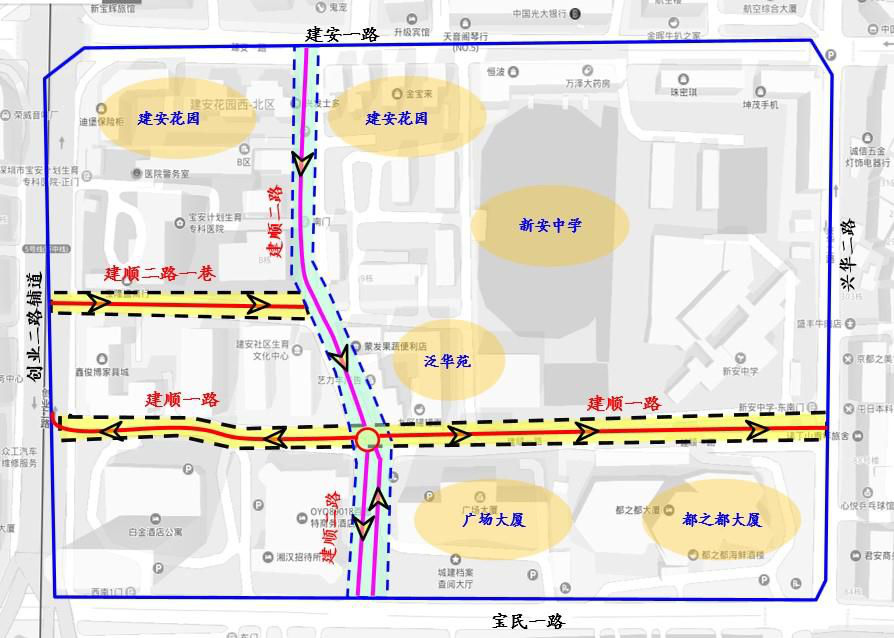寶安交通局計劃對新安中學(xué)初中部周邊道路開展交通綜合整治。