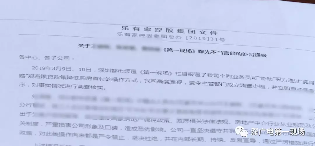 樂(lè)有家公司通報(bào)稱,《第一現(xiàn)場(chǎng)》曝光的萬(wàn)豪月半山分行的王姓、陳姓業(yè)務(wù)員,以及蘭溪谷分行的曹姓業(yè)務(wù)員,提及可以協(xié)助買方通過(guò)“真假離婚”規(guī)避限貸政策,降低購(gòu)房首付的言辭,已違反國(guó)家房地產(chǎn)調(diào)控政策、政府相關(guān)法律法規(guī)、行業(yè)規(guī)范等,造成惡劣影響,對(duì)相關(guān)人員進(jìn)行嚴(yán)肅處理。