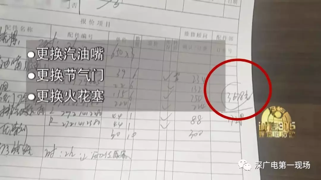 而這個小故障在經過大興奔馳羅湖店的檢查后,卻被開出3600多元的維修費,包括更換噴油嘴膠圈、節(jié)氣門墊等部件,以及工時費。