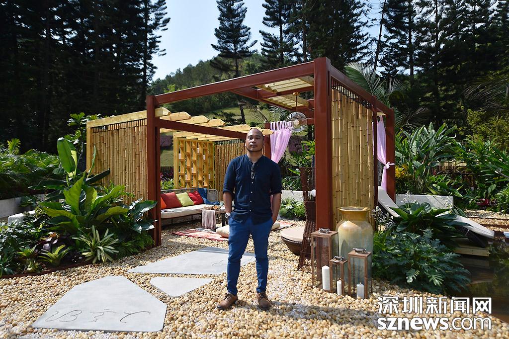 設(shè)計師戴昆侖與他設(shè)計的作品現(xiàn)代廚房花園合影
