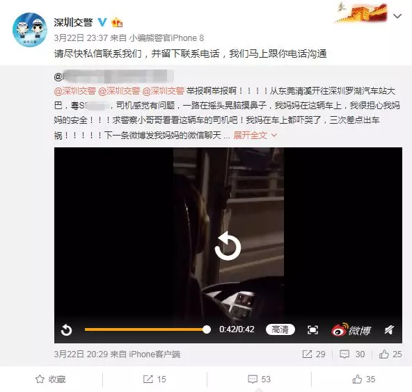 “舉報(bào)啊舉報(bào)?。。?!大巴車(chē)三次差點(diǎn)出車(chē)禍!司機(jī)一路搖頭晃腦摸鼻子!?。?!”3月22日晚,深圳交警在微博上接到網(wǎng)友舉報(bào)。