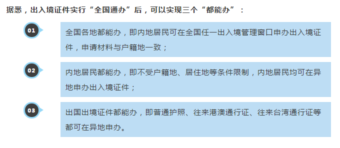 4月1日起,中華人民共和國普通護(hù)照、往來港澳通行證、往來臺灣通行證等出入境證件實(shí)行“全國通辦”。